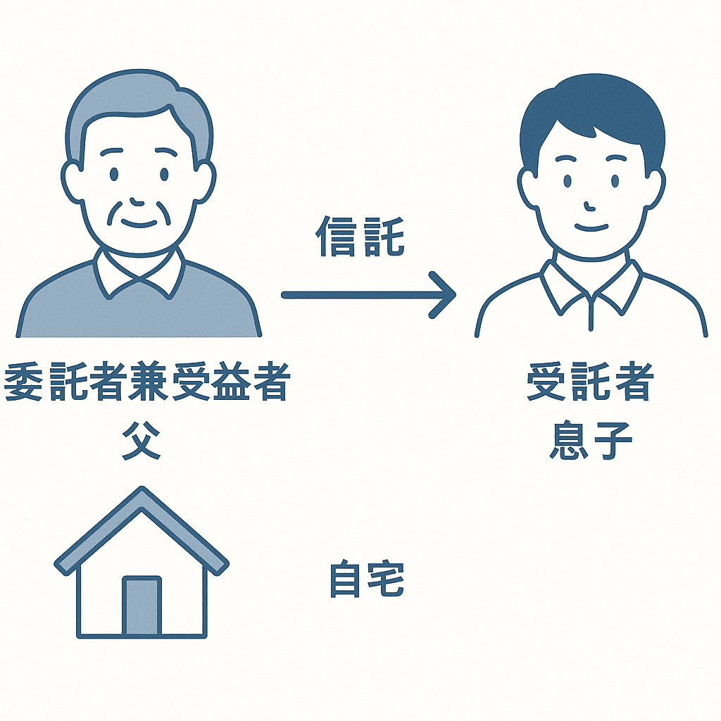 高齢の父(委託者)が、将来的に施設入居を見据えて、自宅とある程度の金銭を息子(受託者)に託すというものです。